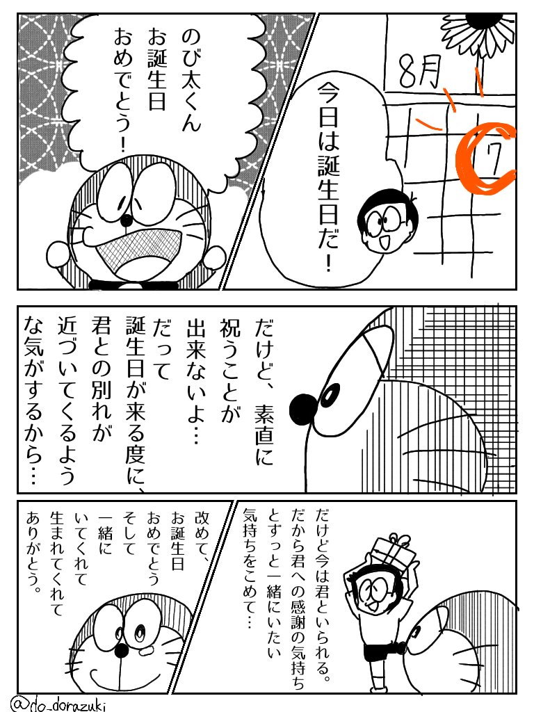 ট ইট র どー ドラ好き 少し早いですが のび太の誕生日でのドラえもんの気持ちを予想 して描いてみました ドラえもん のび太 野比のび太誕生祭21 野比のび太生誕祭21 ドラえもんファンアート